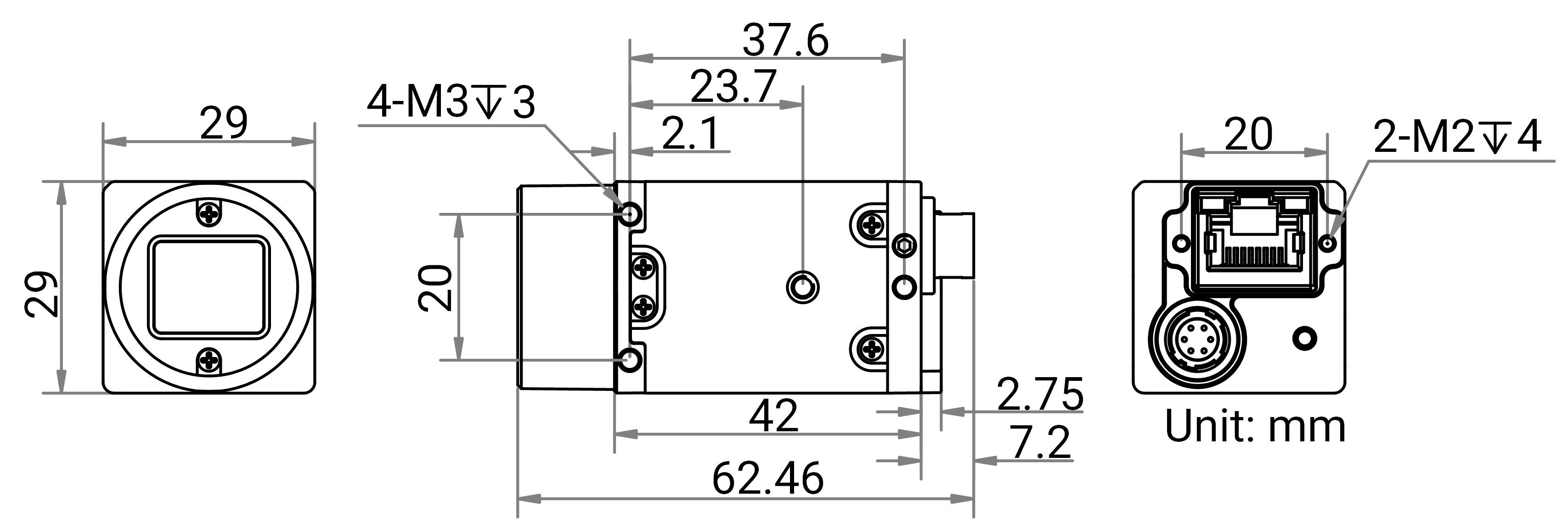 • Adopts GigE interface and max. transmission distance of 100 meters without relay.